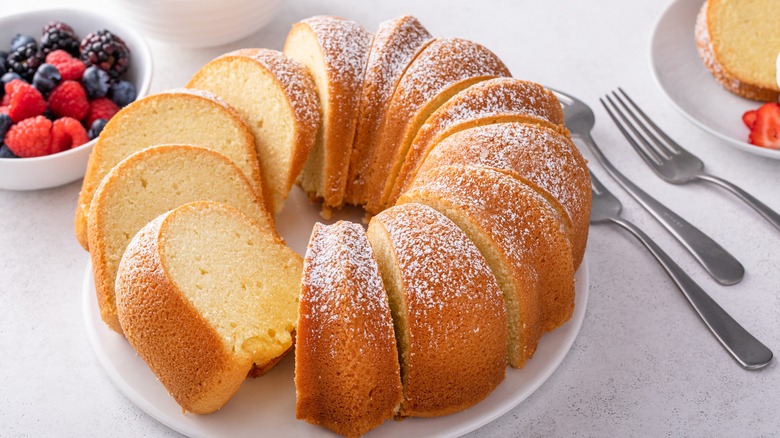 Foolproof as folding may be, beyond technique, there are several other tricks that can make adding cake to ice cream even easier. For example, although you could bake a cake, let it cool, and cut it up, we suggest picking up a ready-made torte or a few cupcakes from the supermarket. Any cake will do, whether that be vanilla, devil's food, red velvet, cheesecake, or carrot. However, if you opt for an ice cream base other than vanilla, consider which cake flavors will pair best — it's better to strike up a balance between delicate and intense flavors so as not to overwhelm taste buds.