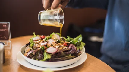 While vinaigrettes and Italian dressings play well with a little heat, complex or creamy dressings should be avoided. They have the potential to curdle or separate, which can lead to a spoiled taste or an upset stomach after lunch. They can also become runny, which won't give you that rich texture you're used to with creamy dressings. For example, it's best not to heat avocado dressing since the avocados can turn brown and lose their texture. Also, dressings with many different ingredients, such as Thousand Island, can also be tricky to heat since ingredients such as mayonnaise, ketchup, and relish can taste off once warmed. A honey mustard dressing is also difficult to heat since the mustard can become bitter.