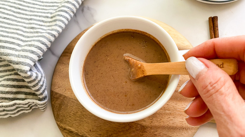 Now go ahead and add the masa harina mixture to the pot along with the ground cinnamon, vanilla, and salt. Reduce the heat to low and cook for 25 minutes. "You'll want to stay close by and give this a stir every few minutes so that it doesn't overheat. It will magically thicken up as it cooks," Hahn shares. Now you are ready to pour the velvety mixture into mugs and enjoy. We think you just found a new and indulgent way to enjoy chocolate!