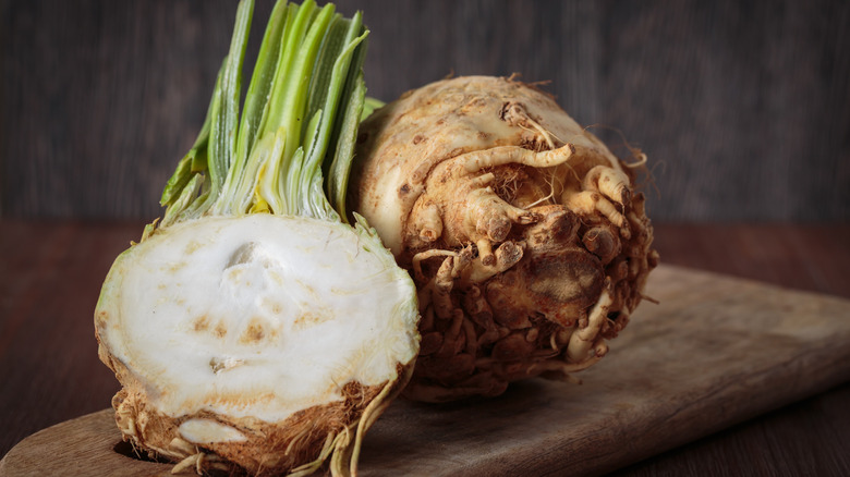 Although the celery root shares a similar name to the crunchy green veggie we pair with buffalo wings, the two have very different textures. Celery root is much starchier and resembles the taste and consistency of other root vegetables like parsnips. Burrell utilizes the celery root by cutting off the hard exterior, cubing the inside, and boiling it with the potatoes. Like other celebrity chefs, Burrell finishes her dish with ample amounts of butter, heavy cream, and salt.