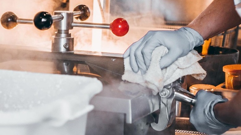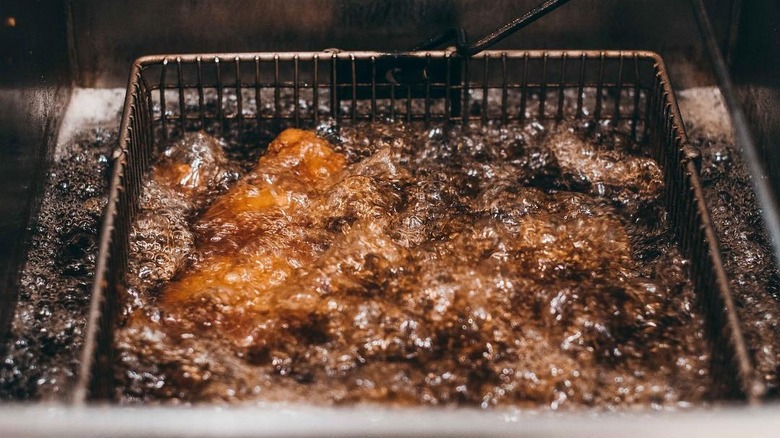 "If you're frying at home on a stovetop, [your oil should be] at least 350 degrees Fahrenheit," Pham says. That's also what you should aim for if you're using a deep fryer as well. Keep things exact by attaching a thermometer to the side of your skillet or fryer and constantly track the oil temperature. If your oil gets too cold, raise the heat between batches to get it back to 350. If your oil gets too hot, lower the heat on your stove slightly and splash in some room-temperature oil to balance it out.