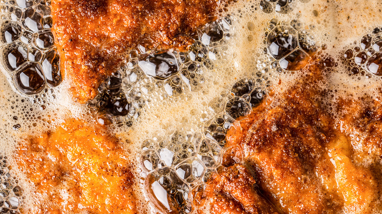 Most home cooks probably don't keep a deep fryer on hand at home. It's bulky, messy, and requires a gargantuan amount of oil no matter what it is you're cooking in it. So the next best option for frying chicken at home is obviously using a pot or skillet on your stove filled with just the amount of oil that you need. And there's nothing wrong with this. Assuming you use the right amount of oil, and monitor the temperature correctly, you can still achieve perfectly crunchy, crispy, flavorful fried chicken.