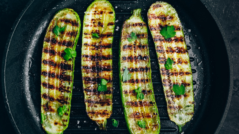 When you add salt to your vegetables before you cook them, a process known as osmosis occurs. While this process does have benefits for other vegetables, it doesn't play in your zucchini's favor and actually tarnishes its sweet flavor. So, this summer, get ahead of it and save the salt for your zucchini for last. Rather than salting them immediately, which causes them to go into an involuntary sauté, glaze them with a touch of oil and place them directly on your hot grill. Once they're nice and charred, you can take them off the grill and give them a healthy sprinkle of cracked salt while they're still hot.