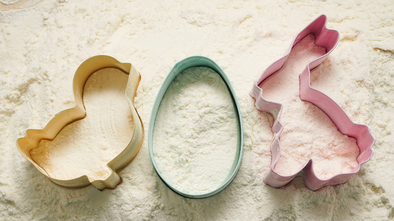 A tip passed down from the infinite wisdom of grandmothers everywhere, dipping cookie cutters in flour has become a hack often cited as a game changer for roll-out cookie recipes. Essentially, when cookie cutters are dipped in flour, this creates a coating around the material, preventing the dough from sticking to the edge as it is used, ensuring that the cookies don't tear. While keeping some flour within reach is a must to avoid sticky situations, the other motive for flouring cutters is to seal the edges of a cookie. With the edges dusted in flour, this helps cookies to better maintain their shape while baking. But this isn't the only thing to remember when working with these helpful little tools.