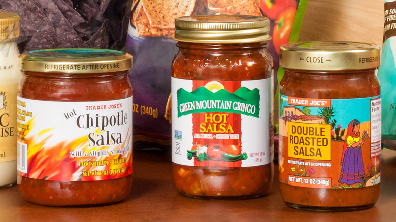 Generally speaking, store-bought salsa — the kind that's sitting on a shelf, not in the refrigerated section — will last longer than homemade versions due to the addition of preservatives and pasteurization processes. Despite the fact that unopened jars can keep up to 1 ½ years in the pantry, once the zesty condiment has been opened that figure reduces drastically. Even when kept in the fridge, an opened jar can only last for about two weeks to a month. While refrigeration is vital in extending the shelf life of salsa, the truth is that the ingredients used and even how the salsa is handled each time it's removed from the fridge can impact its eventual expiration, which is why it's so important to always abide by a few storage rules.