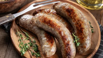 Want a little kick to your sausage without the aid of spicy mustard? Reach for a bierwurst. This is a smoked sausage originally from the Bavarian region of Germany. It uses all kinds of seasoning, including paprika, mustard seeds, and black peppercorns. The meat is cured, smoked, cured again, then blanches, allowing it to have an extended shelf-life.