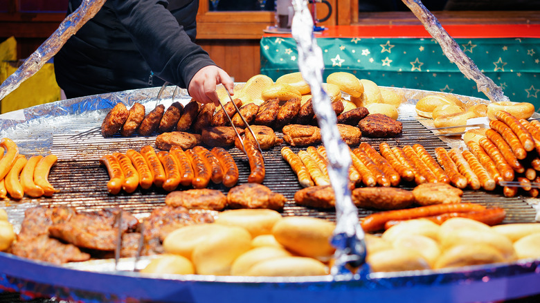 Sometimes nothing hits the spot like an expertly grilled bratwurst. Whether you prefer your sausage on the end of free sample toothpicks at the neighborhood Costco or you devour them with spicy mustard on a bun at a favorite dive bar, there's something to be said about the perfect blend of meat and fat used for a German bratwurst. And yet, not all brats are the same. Despite what it might look like when visiting the local supermarket, most regions in Germany have their own unique style of brat.