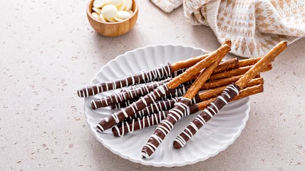 There is something irresistible about the combination of salty pretzels and rich chocolate known as chocolate-covered pretzel rods. And even when making these treats for a specific holiday or themed birthday bash, they typically require just a few ingredients. That said, it can be a bit tricky to coat and decorate perfectly covered pretzel rods when they're completely round.