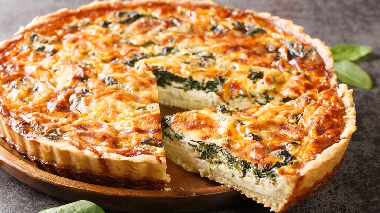 An analysis from Metro shows that Aldi is the cheapest U.K. grocery store to grab everything you need to make the recipe with a total price of £11.06 per quiche, while Tesco is the most expensive at £18.58. CNN also states that quiche isn't the only store-bought food to skyrocket in cost over the past year — the price of eggs in the U.K. rose by 32% and cheddar cheese by 42%. So while grocery store quiche may be more expensive than it used to be, it still might be the most affordable way to celebrate the new king's coronation.