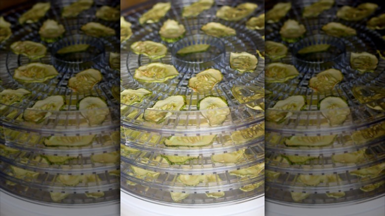 If you're already making french fries in an air fryer, you can use the same appliance to prepare pickles for their debut. As you cut the pickles to be dehydrated, keep in mind that thinner slices are better. Aim to slice similarly-sized pieces so that each piece dries out evenly. Once dried, dehydrated pickles offer a fun snack, yet for our fry-making purposes, you'll want to grind the dehydrated pickles into a fine powder. Whatever powder you don't use, you can store in an airtight container and sprinkle on top of french fries and popcorn for the next six months. After sampling this unique ingredient, you may find yourself incorporating the powder into other recipes, like mashed potatoes and Bloody Mary cocktails.
