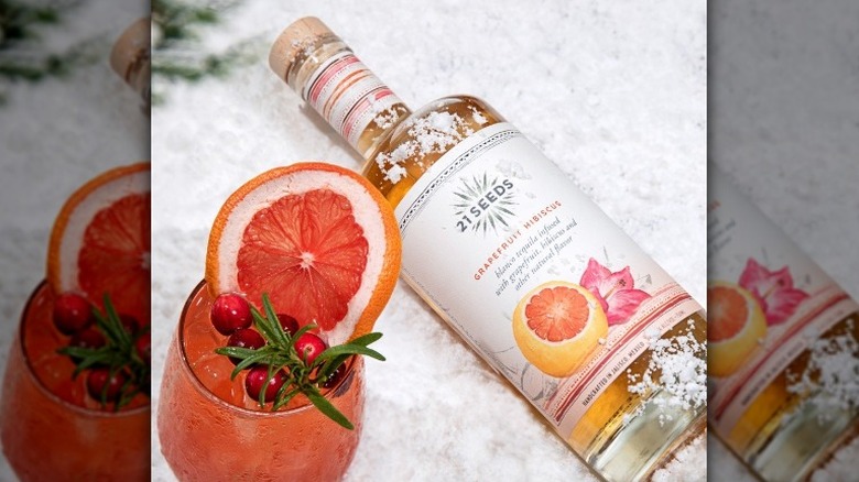Infusing citrus fruit and tropical flowers into 100% blue agave tequilas in Jalisco, Mexico, 21 Seeds Grapefruit Hibiscus is aromatic and light, with fruity sweetness without being cloying. At 70-proof, the liquor is lower in alcohol than typical tequila options. We love it in our Paloma cocktail or poured over ice with seltzer and lime for a highly refreshing drink.