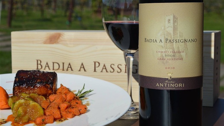 Located within Chianti Classico, Badia a Passignano Gran Selezione uses only the best, hand-selected sangiovese fruit from the historic estate vineyards. Nicely textured and concentrated, the wine opens with notes of wildflowers and warm spice, followed by red berries, dried tobacco, and spiced vanilla. With a savoriness, the wine is perfect with stuffed portobello mushrooms.