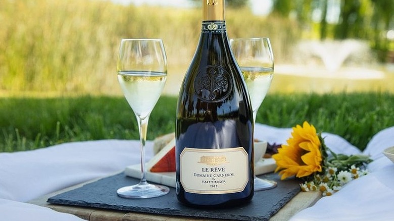 The winery's signature sparkling wine, Le Reve, is the realization of Crane's exemplary expertise. Meaning "my dream," La Rêve Blanc de Blancs is a traditional method brut-style sparkling wine of 100% Chardonnay. The bubbly in the bottle ages at least six years, enriching its delicate grace and style, creating layers of brioche, blanched almond, golden apple, lemon curd, and fresh cream. It symbolizes Taittinger's commitment to producing premium wines in California.