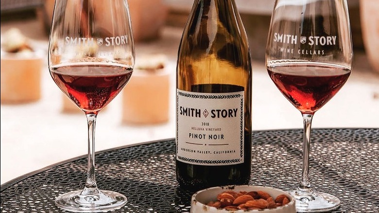 Smith Story Helluva Vineyard pinot noir highlights the gorgeous fruit grown north of Sonoma in Anderson Valley. The wine is slightly rugged, with a note of dried leaves and forest floor, which melds with red berry, cherry, and black tea. Partially aged in new French oak, the appealing wine ends with a smooth, lingering finish.