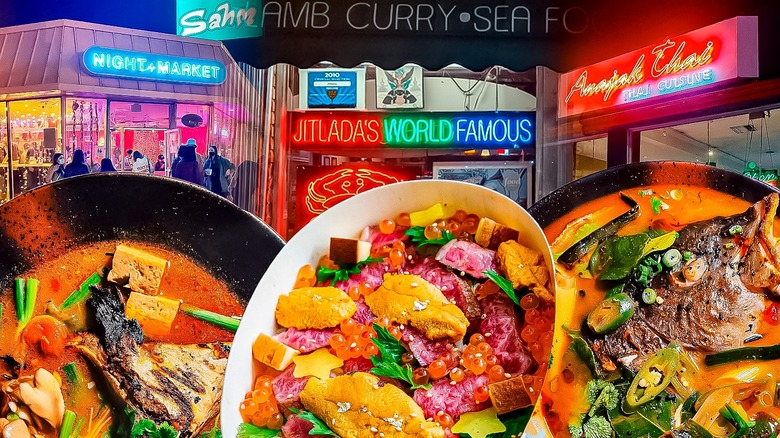 There's nothing quite as comforting as a pad see ew on a cozy night in. While Chinese takeout reigned supreme for many decades, Thai takeout seems to be the more popular indulgence as of late. However, whether you're looking to order in or go out, Los Angeles is home to an authentic Thai cuisine scene that is well worth exploring. From Thai town to more modern Thai eateries on Sunset Boulevard, finding some solid pad Thai or Panang curry isn't too difficult. Whether you're craving noodles or a more refreshing and light papaya salad, even those who aren't too familiar with Thai food should branch out and give it a try.
