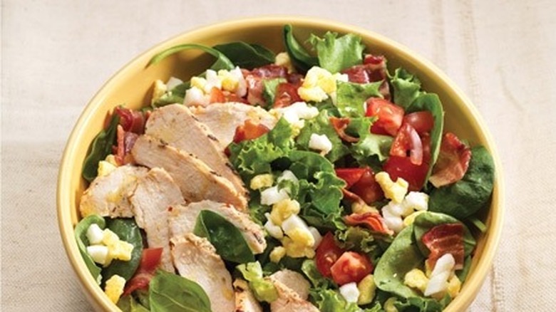 While it's always nice to take a break from food prep and eat out, we can't help but think how easy this salad would be to put together at home. If you want to give it a try, check out our tips on how to make the crispiest bacon, perfect hard-boiled eggs, and the absolute best grilled chicken. You can even play around with your greens to find your favorite combination. Lettuce know how it goes. (Sorry, couldn't resist.)