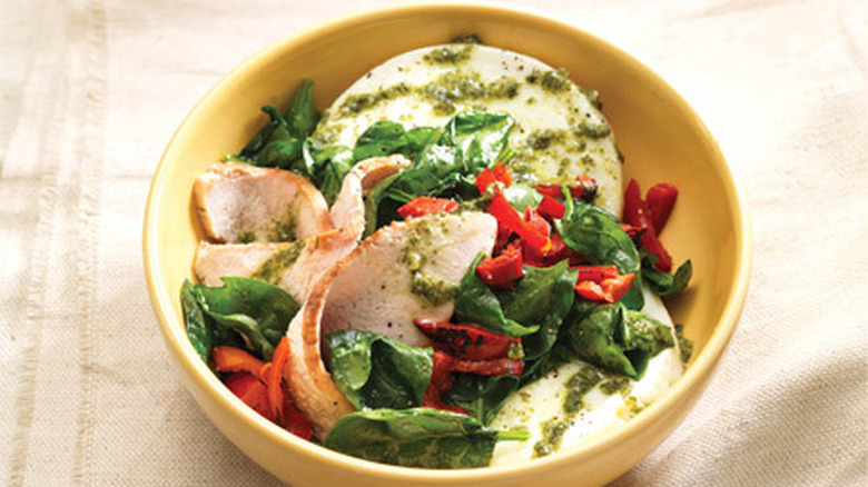 Although intermittent fasting may be trending, many health experts agree that breakfast is the most important meal of the day and should not be skipped. The good news is that Panera's Power Breakfast Egg White Bowl with Roasted Turkey, which includes sliced roasted all-natural turkey, egg whites, warm baby spinach, roasted peppers, and basil pesto, may just have you racing out of bed to the nearest restaurant location.