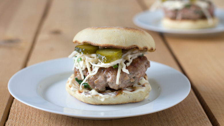Dense, juicy hamburgers can be portioned and separated into smaller meat patties for lighter meals, and English muffins can serve as the burger's bread instead of your usual seeded bun. English muffins aren't just meant for breakfast sandwiches and light snacks; if you prepare them correctly, English muffins can be transformed into delicious vehicles for perfectly cooked burger patties leaving you room to enjoy all your other favorite snacks too. So grab your favorite burger toppings, and get ready to set smaller burgers on the table — without having to sacrifice any taste.