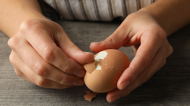 The secret is adding a bit of baking soda to the cooking water. Cook the eggs as you normally do, then watch how easy it is to slough off the shells. You don't need much — about ½ teaspoon of baking soda per quart of water is all it takes. Perhaps the only downside of using this trick is that your eggs might have a stronger sulfur taste and smell than you're used to.