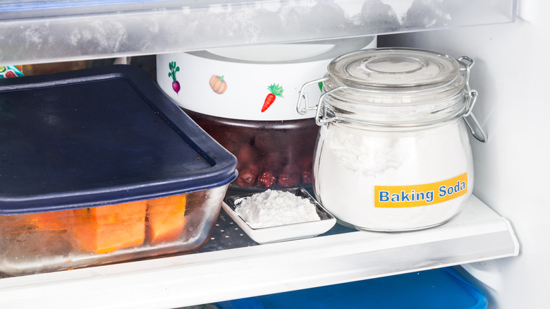 Baking soda might be the ideal compound for odor-fighting but it's important to remember that it can't do everything. Deodorizing baking soda should only be used for eliminating stinkiness, not for cooking. That's because it absorbs odors while simultaneously knocking them out. If you were to use your fridge baking soda for cooking, you could end up infecting your cookies or bread with foul food odors. An easy solution is to have two containers of baking soda on hand — one for the refrigerator and one for the cabinet.