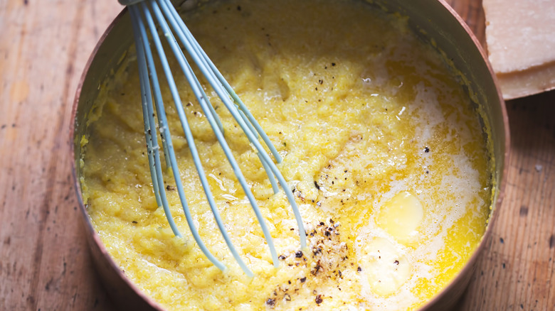 It may sound like sorcery, but we just take it as further proof of the fact that baking soda truly is a jack of all trades. Baking soda's slightly basic pH causes the pectin in the corn's cell walls to break down. Once these defenses are compromised, it's much easier for water to enter the cells and gelatinize the starch. The result is a super creamy, porridge-like dish. For the best results, stir ⅛ of a teaspoon of baking soda into your cooking water just before adding the polenta.