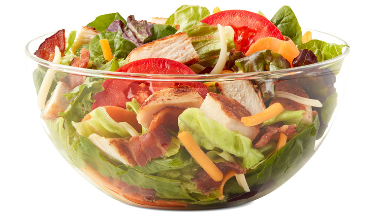 The best seasonal salad right now at Wendy's is the Apple Pecan Salad with herb-marinated, grilled chicken breast, crisp red and green apples, sweet cranberries, roasted pecans, and crumbled blue cheese. This salad comes with a pomegranate vinaigrette that includes sugar, so opt for olive oil and vinegar instead.