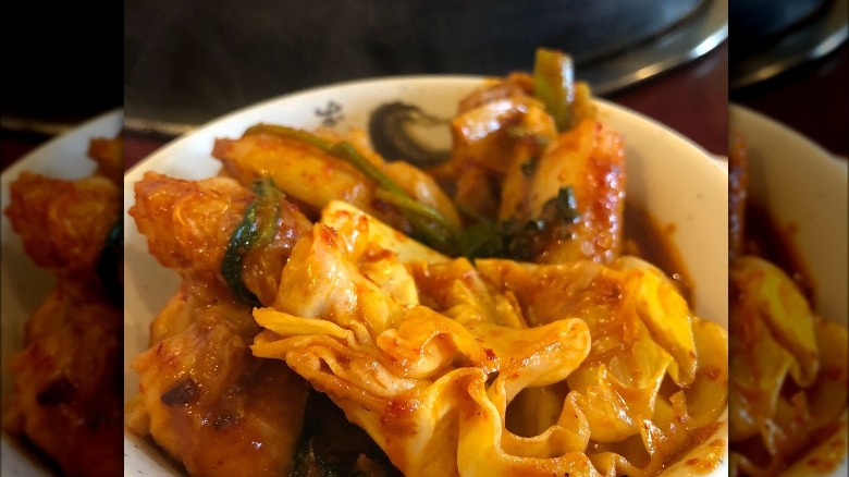Mapo Galbi is one of the most essential restaurants in the city, and while the menu does have a range of options, you're only here to get one thing: the chicken. Known as dak galbi, this dish consists of a large skillet full of chicken, cabbage, rice cakes, perilla leaves, and vegetables that will arrive and immediately starts being cooked in a large, in-table cast iron skillet. The dish cooks down in front of you and you'll have the chance to start eating the very moment it's done. When you get about halfway through the dish, a second course begins from the first. A pile of rice is stir-fried into the remnants of the chicken dish so you can soak up every last bite of flavor.