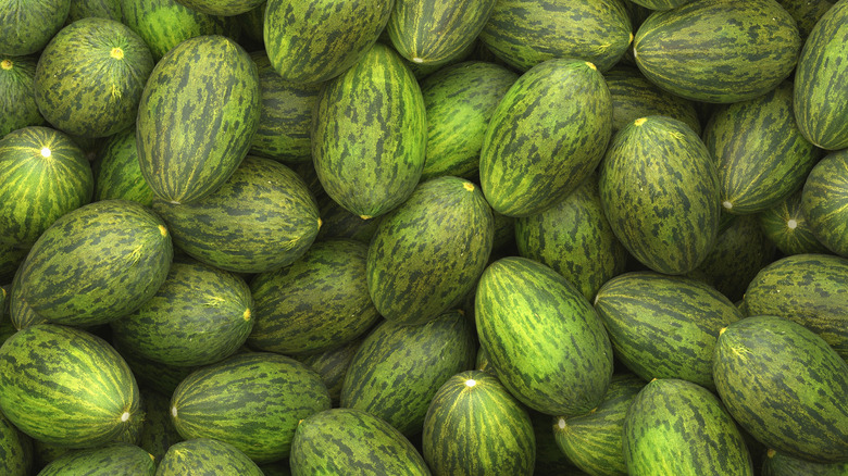 When summer rolls around, there are few foods you start craving more than fresh fruit. While various berries and other in-season fruits often make the cut for your annual barbecue or pool party shopping list, ripe, juicy melons often get overlooked. You may stock up on favorites like watermelon and cantaloupe, but there are a handful of others worth trying out. One of these is a lesser-known melon that has a bit of a misleading name: the Santa Claus melon (Cucumis melo var. inodorus).