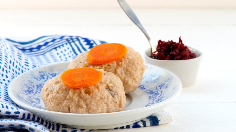 While most people associate gefilte fish with Jewish holidays like Passover, it can and should be eaten year-round. The name means "stuffed" in Yiddish, referring to the whole fish stuffed with a mixture of fish, carrots, onions, and spices before being baked. Today, the whole fish is absent from the recipe, and the stuffing mixture now makes up the dish, traditionally served alongside grated horseradish, picked beetroot, or chrain (which is a combination of the two).