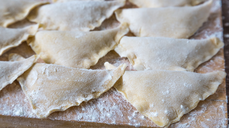 Dumpling devotees of all kinds should remember the word "kreplach" for their next visit to the Jewish deli. Though perhaps one of the lesser-known items amongst non-Jewish communities, kreplach is a labor of love that showcases a slightly thicker than the wonton-style outer casing and a mixture of ground beef or chicken and sautéed onion filling. Once filled and closed, the dumplings are boiled in soup or deep-fried until crispy.