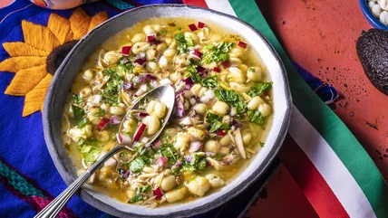 Pozole is a Mexican culinary institution that can be traced back thousands of years. The main ingredient, hominy, was considered to be the most important crop in the ancient Mesoamerican world. Hominy is made by shelling corn kernels and submerging them in a mixture of water and lime so they soften and become enlarged.