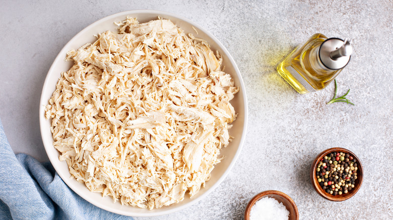You can shred your chicken using a stand mixer, which has been a popular kitchen trick for years. All you need to do is drop your still-warm chicken into the bowl of your stand mixer and use the paddle attachment to tear up the chicken into perfect shreds. Similarly, you can use a hand mixer to shred chicken, a technique that blew up on TikTok and is a lifesaver for anyone who doesn't have a bulky stand mixer in their kitchen. Again, you want to ensure your chicken is still warm when you put it in a bowl and use the hand mixer to work the chicken into strands. Warm chicken is easier to pull apart than cold, and it will make the job much easier. If your chicken has already been chilled, you can bust out the big guns and load it into a food processor, letting the powerful motor and blades do the hard work for you.