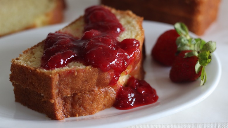 Pound cake with jam and cake crumbs