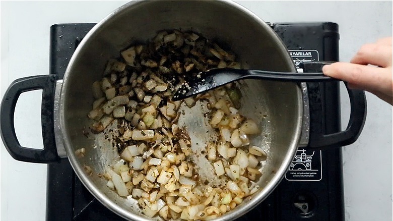 Beef shank isn't just a great cut of beef to slow cook, it also has a secret that enhances this soup's broth. "By utilizing beef shank, with both bone and marrow, you may make a bone broth with a sweet, savory, and full-bodied flavor that has been enhanced by the marrow in it. It would be quite difficult to achieve that beefy flavor without it," Altan explains. Bone broth is different than stock; it has more health-boosting properties like amino acids and collagen. Here's how to make this brothy, beefy creation.