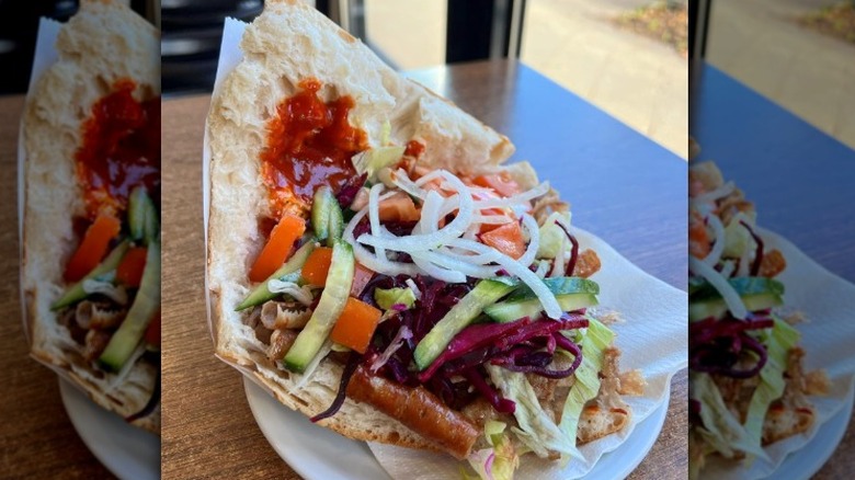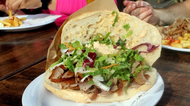 The other thing to know about döner kebab is that no matter what Germans tell you, they didn't completely invent it. The dish's roots can be traced to Turkey — its name comes from the Turkish word dönmek, which means "to turn," a direct translation of the cooking style used to prepare these unique meals. Regardless of its origins, Germany is called the kebab capital of the world by many.