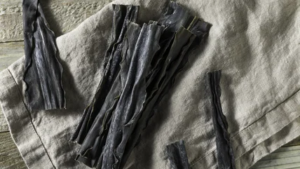 A leaf of kombu has two layers that connect and can be opened to reveal a small pouch that can be used during cooking. The kombu you come across in stores and on menus will have been harvested in either its first or second year. First year kombu is much milder in flavor than its more mature counterpart. Second year kombu is the best option for making Japanese stock, known as dashi, due to its richer, deeper flavor. It's also more expensive for this reason. Kombu is a foundation of Japanese and other east Asian cuisines and as much of a staple there as chicken stock is in the West.