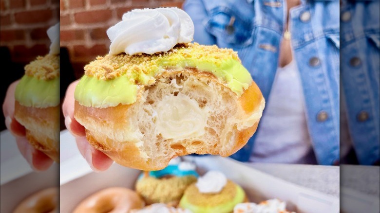 That said, although any number of flavors could have made the cut, the doughnuts undergoing a revival are all cult classics from the last few years. Back from their brief appearances in 2018 are the Banana Pudding Doughnut topped with cream and a triad of vanilla wafers and the berry-forward Strawberries & Kreme Doughnut. Alongside these two iconic offerings is also the Chocolate Kreme Pie Doughnut decorated with a dollop of cream and chocolate chunks from 2019, in addition to the zesty and tropical Key Lime Pie Doughnut dusted with graham cracker crumbs from 2021.