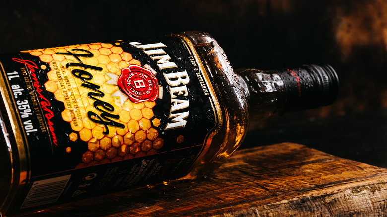 There are myriad ingredients that will help add sweetness to a BBQ sauce, from straight-up sugar to agave nectar to balsamic vinegar. Bourbon, being a sweeter whiskey variety, offers up another route — and if you want to go one step further, honey-infused bourbon is a great (and cost-effective) way to do it. Jim Beam Honey is made with real honey liqueur blended with Jim Beam's classic bourbon. Importantly, this bourbon is decidedly sweet, but not sickly sweet, so the honey flavor won't overpower the rest of the sauce.