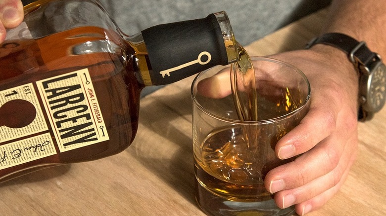 If you're looking for a one-of-a-kind, small-batch, award-winning bourbon that will impress your whiskey snob friends at an affordable price, you're in luck: Larceny's Small Batch bourbon is impeccable. Larceny Small Batch is made with wheat rather than rye as its secondary grain for an intoxicating balance of sweet and savory. It's won numerous awards, including a gold medal at the 2021 San Francisco World Spirits Competition among its accolades. The bottle maintains a solid five stars in reviews on Larceny's website, with reviewers citing excellent balance and versatility — it's brilliant straight-up, but also makes a lovely upgrade to an Old Fashioned or Kentucky Mule; so one can only figure that this smooth sipper is sure to shine in a homemade BBQ sauce.