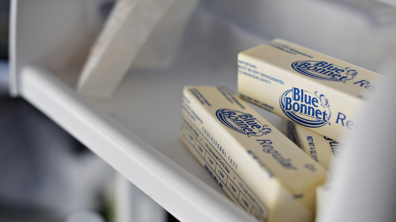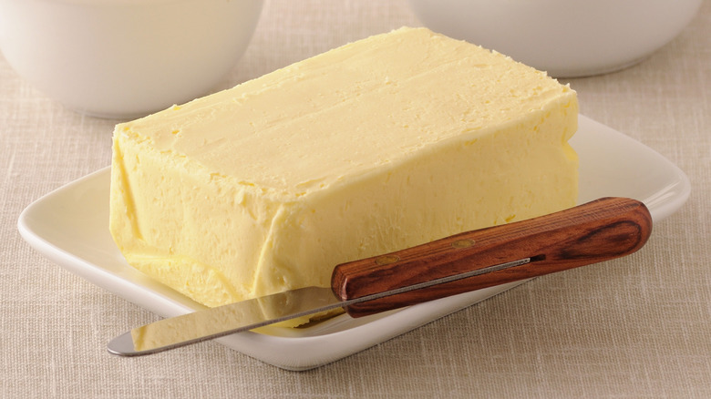 Should you be looking to store butter long-term, there's still another option. Rather than put yourself in a compromising position by unsafely canning your own butter, turn to the professionals and seek out commercially processed tins. Designed for emergency situations, these cost-effective tins can sit on a pantry shelf for an impressive amount of time. To avoid the risk of botulism altogether, it might even be wise to look for clarified butter, better known as ghee, or the ultra-long-lasting, freeze-dried versions of butter.