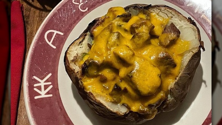 There's no shortage of potato dishes at The Westside Drive-in. The 1950s-themed diner has been open since 1994 and has become one of the most famous food spots in Idaho and has even been featured on Food Network's "Diners, Drive-ins, and Dives." The restaurant, which has two locations in Boise, has a huge menu of made-from-scratch items, including Super Spuds, which boasts to be the "biggest bakers in the valley." You can get your pound of starch filled with broccoli and cheddar or stuffed with bacon, chives, and sour cream. Or if you're one for the simpler tastes, the Basic Idahoan is just plain butter. You'll also find other American classics like potato salad and mashed potatoes with gravy as side dishes. And you can't expect to go to a drive-in like this one without finding classic diner potato-forward finger foods like French fries, cheese fries, chili cheese fries, curly fries, or tater tots.