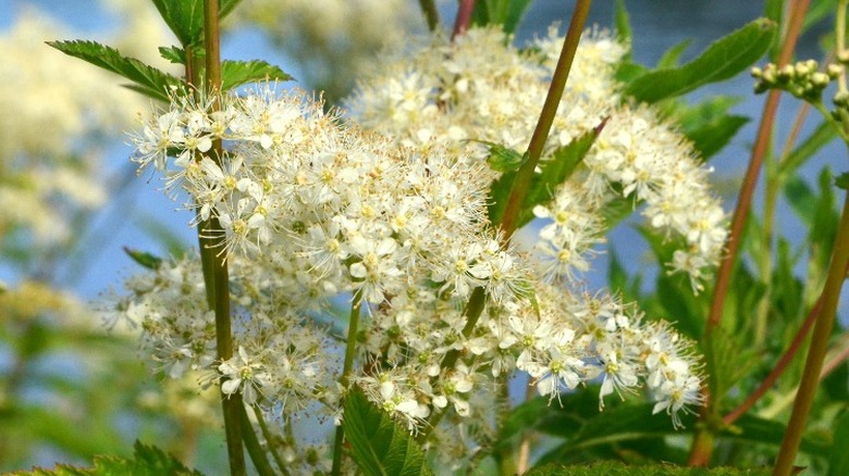With a name like meadowsweet, you'd think this flowering herb would have a pleasant taste. While it's true that the flowers can smell sweet, their taste is not. The flavor is often described as very medicinal, which for some can mean metallic, detergent-like, or acerbic. This makes sense, considering it's a plant traditionally ingested for medical rather than culinary reasons. According to Healthline, it contains salicylates and tannins, compounds that contain anti-inflammatory properties. Historically meadowsweet has been used to treat conditions like gout, arthritis, and joint pain, as well as heartburn and stomach ulcers.