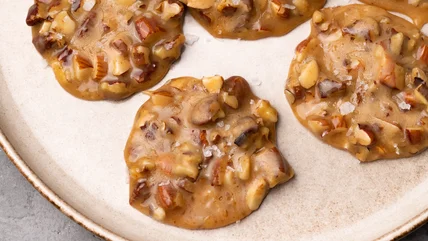 Did you know there are actually several different types of pralines? In Belgium, the term is used to describe a filling used for chocolate candies, but in both France and the U.S. it refers to confections made from sugar-coated nuts. French pralines tend to be made with almonds, while American ones involve pecans, but here we're going with a hybrid version by using both types of nuts. "This recipe," says developer Jennine Rye, "is a quick and delicious way to make melt-in-the-mouth pralines." She goes on to say, "The lightly toasted nuts pair really well with the sweet, slightly soft, and chewy caramel."