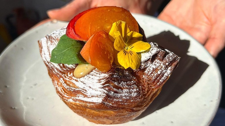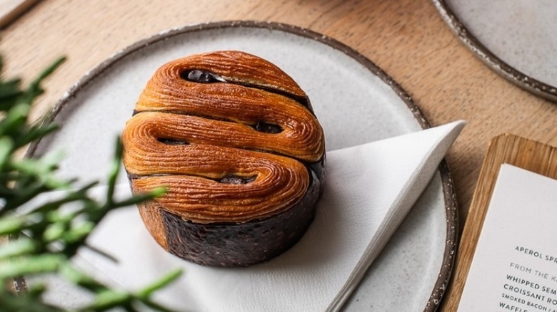 Aside from perfectly-executed croissants and plump pain au chocolat, the bakery loves experimenting with its buttery croissant pastry to make entirely new concept bakes. Claimed by Pophams to be the first pastry they ever sold, it's not unfounded to say that the maple and bacon roll — made with a luscious croissant pastry — has achieved legendary status. The brown and flaky croissant dough also makes a perfect "nest" for other fillings, from the menu regular Key Lime Pie — made with lime compote, cream cheese, and ginger crumbs — to specials, which feature unique ingredients such as sea buckthorn curd, buffalo mozzarella panna cotta, and rosemary vanilla custard. If you enjoy complex flavor interplay and a little drama, Pophams can't be missed.