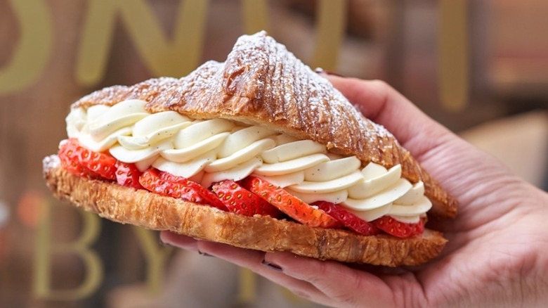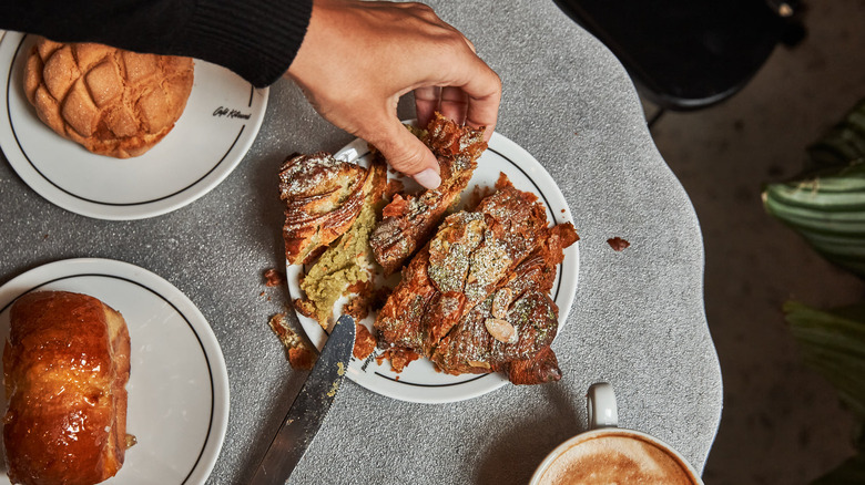 Chief among the croissant selection is savory aubergine (eggplant) parmigiana croissants. Umami may not be a word you'd expect with pastries, but these are cheesy, rich, and tender — need we say more? For additional savory indulgences, we also highly recommend the za'atar croissants sandwiches or "croccacia," a novel combination of croissant and focaccia dough that can be served sweet or savory, depending on preference.