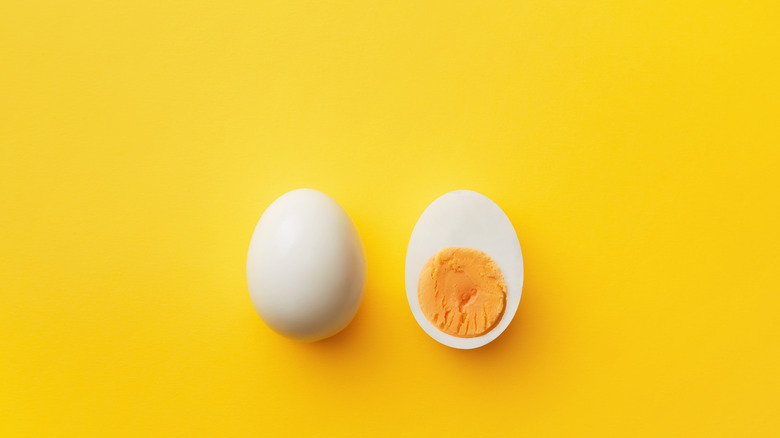 Hard-boiled eggs are a great breakfast and snack food because they're filled with protein and fats to help you power through your day. One hard-boiled egg has around 70 calories and 6 grams of protein. Eggs are also rich in choline, which helps aid in cell maintenance and cognition. In addition, hard-boiled eggs are a good option for folks looking to consume a low-sodium diet because you won't have to worry about the added salt used in prepared eggs.