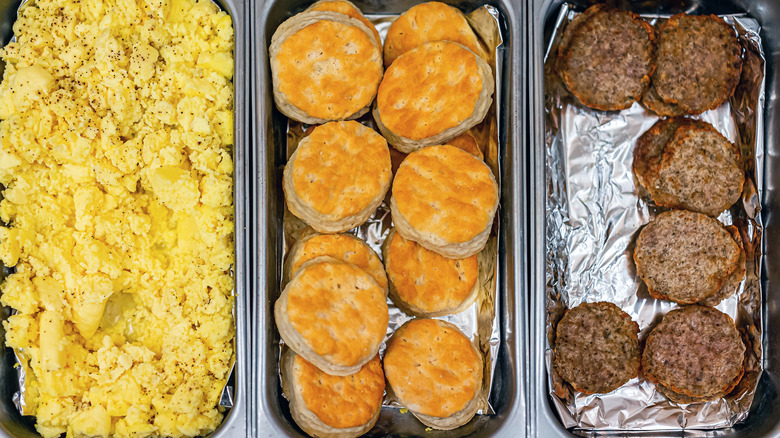 Hotels have capitalized on the American love of all things bacon, including cooked bacon, sausage patties, and links at most breakfast buffets. While these breakfast meats are a protein-dense start to your day, there are some drawbacks to picking out breakfast meats from your hotel's buffet. Not only are these meats rarely seasoned well (besides with copious amounts of salt), but they're also not one of the most sanitary options you can pick from the buffet.