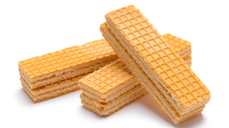 Assembly starts with long vanilla wafer cookies, which can be made from scratch but are more easily purchased. A buttercream made with espresso powder, vanilla, butter, and sugar gets sandwiched inside, and the confection is set in the fridge. Next, it's covered in melted dark chocolate and set one more time. While the result won't reproduce the impeccably uniform shape of a store-bought bar, there is an appealing quality to a cold Coffee Crisp whipped up by hand.