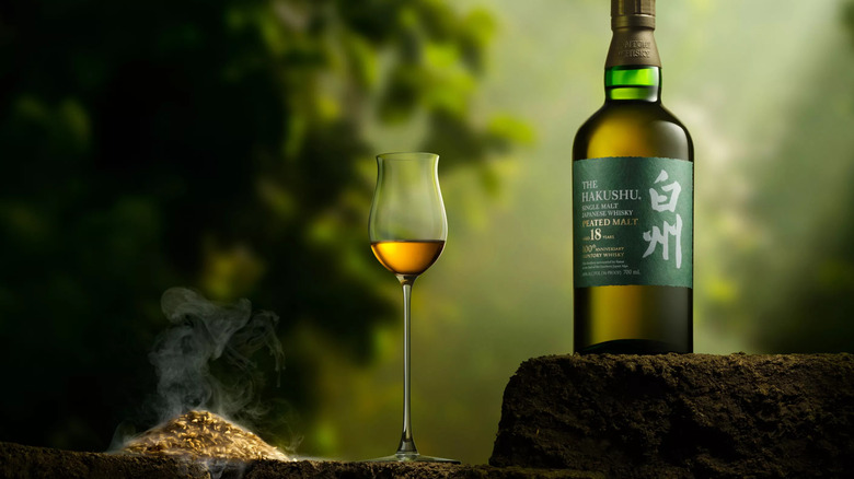 The Hakushu 18-year-old Peated Malt is a wildly different expression of Japanese whisky. It is made at the Hakushu distillery, located at a high elevation in the Japanese Alps, and its smoky flavor doesn't evoke the peatiness of an Islay Scotch; rather it's a gentler and refined version, one riddled with notes of apple, citrus, and a hint of spice. The anniversary Hakushu is also bottled at 48% ABV, and Food & Wine describes it as "a balanced interplay between a barbecue-forward bouquet and a palate that sings with subtle sweetness; think orchard fruit kissed with wildflower honey."