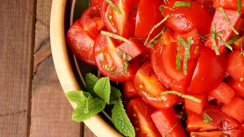 However, Nigella Lawson has a nifty trick for sweetening them; it pretty much only requires patience. You'll need to get started the night before making your tomato-filled dish. She says to turn your oven to 450 degrees Fahrenheit while prepping your tomatoes. A bit of salt and sugar over your halved Romas is all it takes before placing your tomatoes in the oven. Then turn your oven off and return to sweetened tomatoes the following morning. The new flavorful results will shock you.